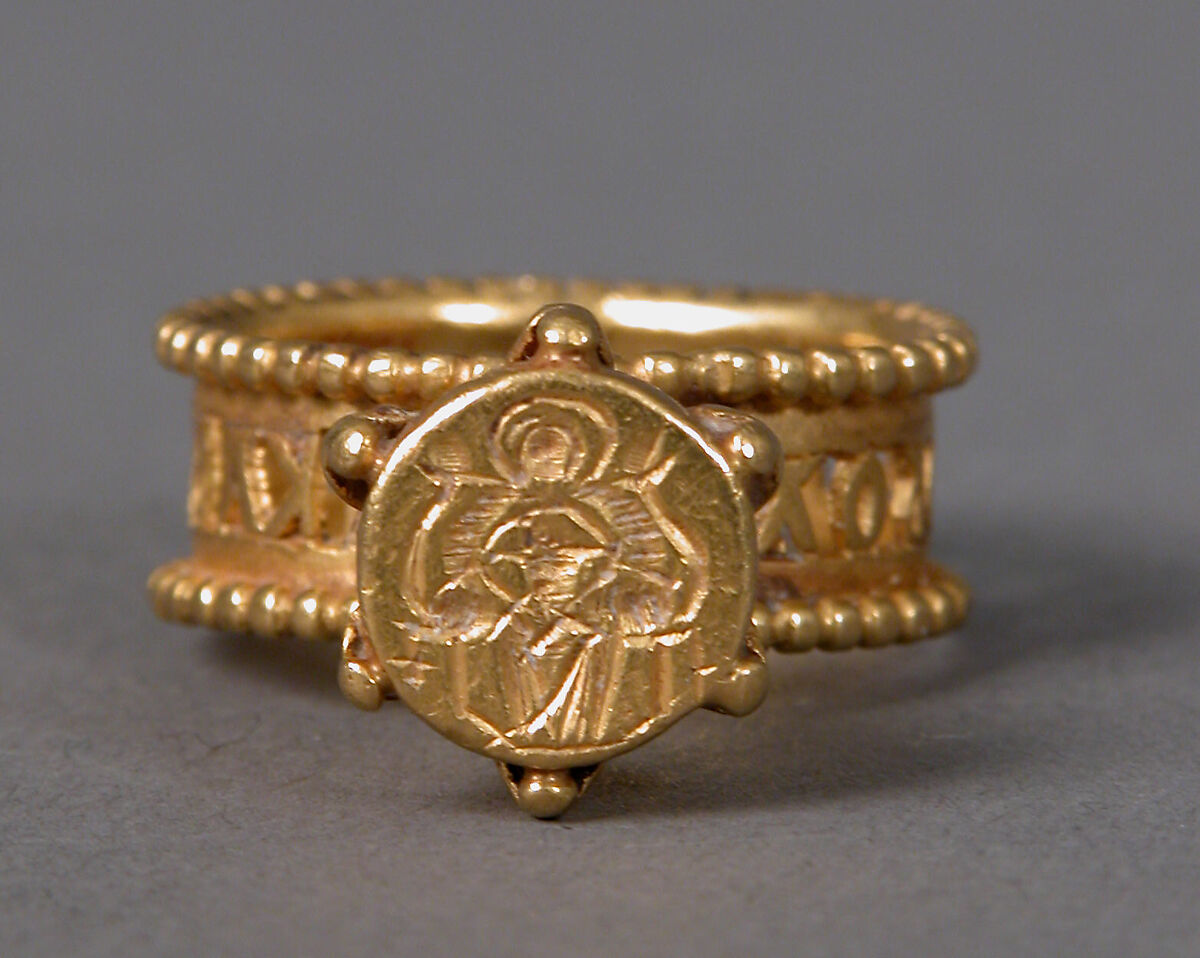 As Christianity became the dominant religion in Byzantine society, Christian imagery was increasingly found on jewelry. Crosses appear by the fifth century; the Virgin Mary, saints, angels, and other holy figures became popular in the sixth century. The images were thought to protect the wearer, aid in prayers, and even perform miracles.