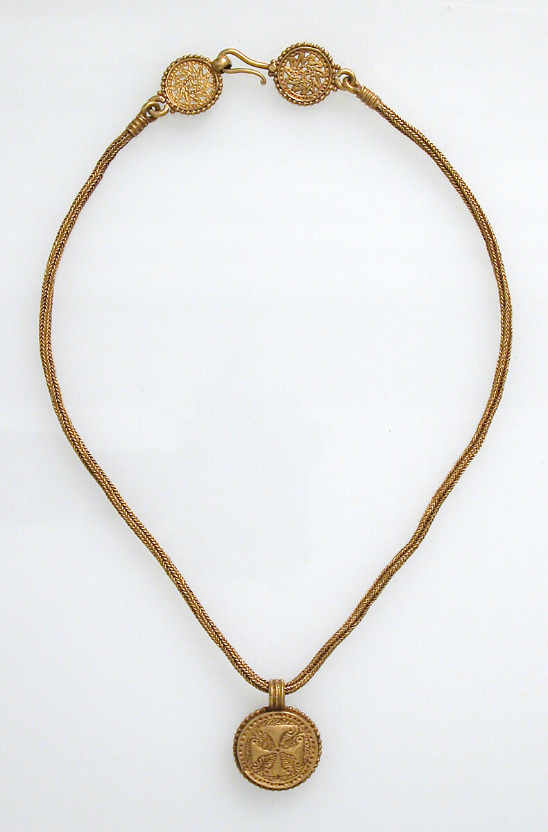 Overall (pendant): 1 1/4 x 15/16 x 5/16 in. (3.1 x 2.4 x 0.8 cm) - Classification:Metalwork-Gold