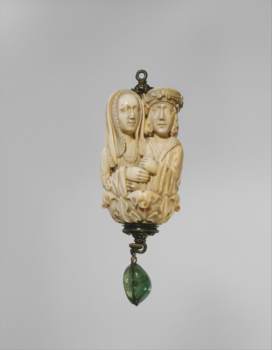 - Medium:Elephant ivory, with emerald pendant, silver-gilt mount