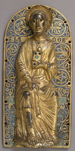 - Medium: Gilt copper, champlevé enamel, glass and stone cabochons