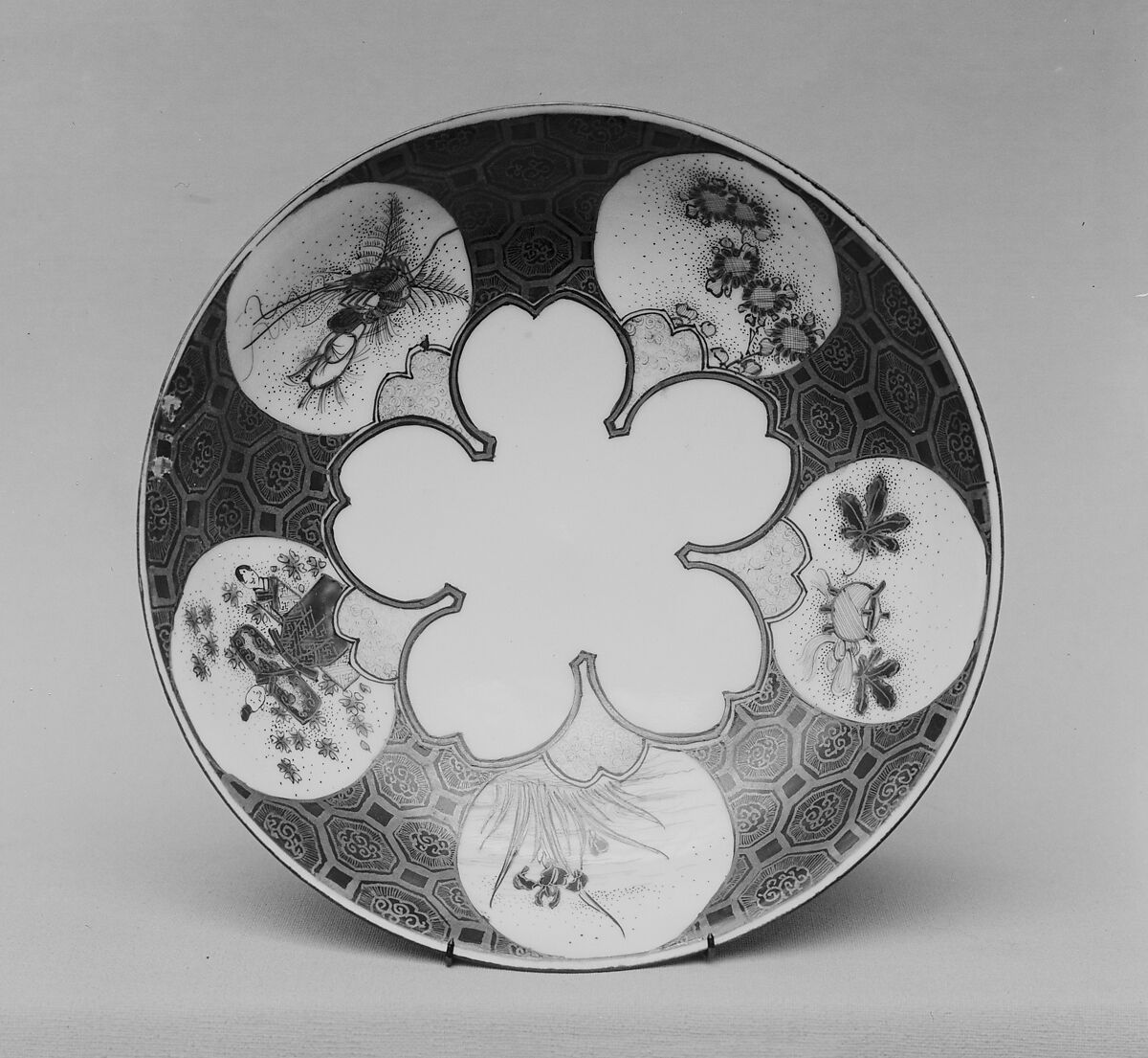 - Medium: White porcelain decorated with red and gold (Hizen ware, Kutani type)