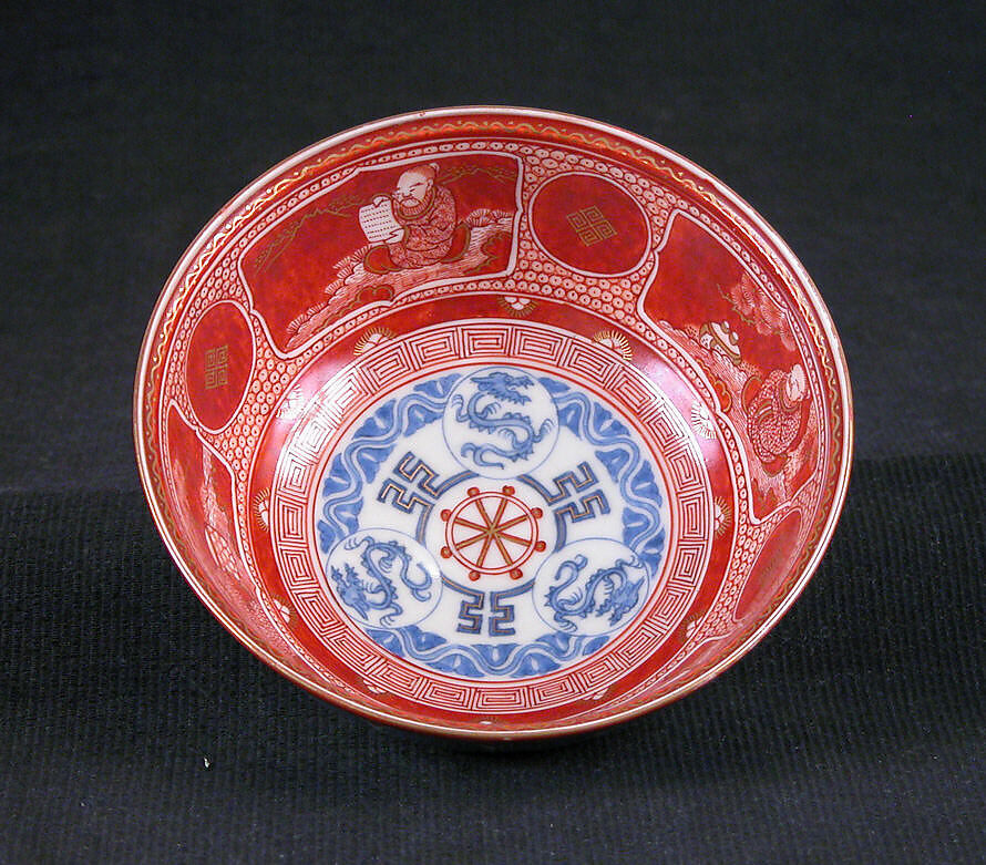 - Medium: White porcelain decorated with blue under the glaze and enamels (Hizen ware, Kutani type)