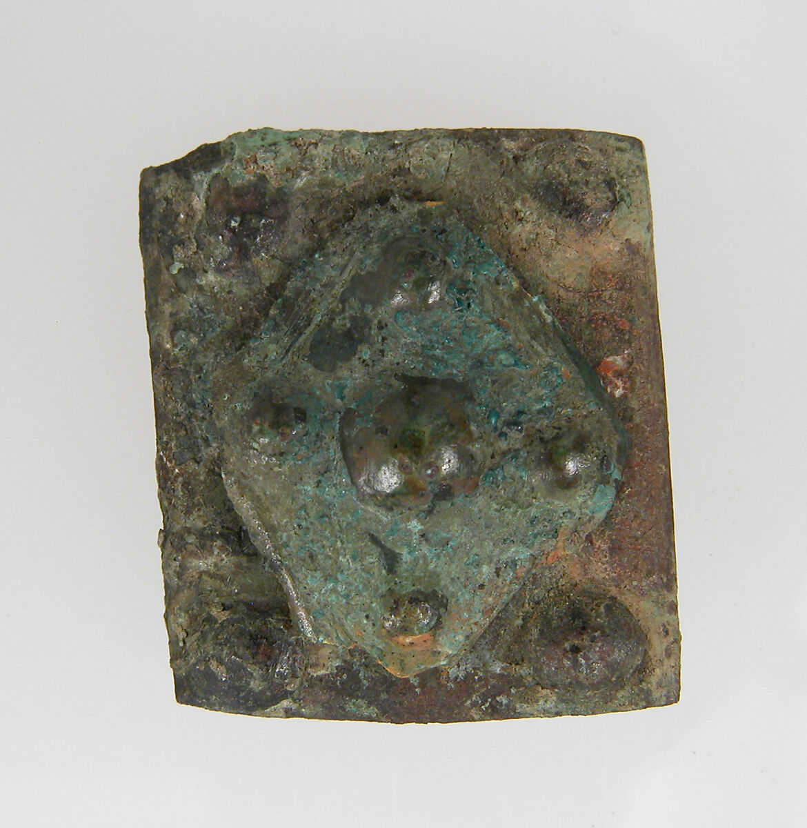 b-applied plaque: 1/2 x 1/2 x 1/16 in. (1.2 x 1.2 x 0.2 cm) - Classification:Metalwork-Copper alloy