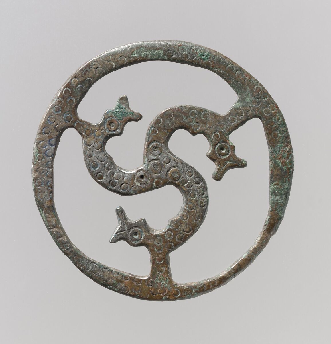 Openwork plaques were hung from a belt by a strap. Such useful objects as combs, keys, or amulets would then be suspended from the plaque by chains or strings. The patterns on these belt fittings ranged from architectural motifs to human figures to abstract designs.
