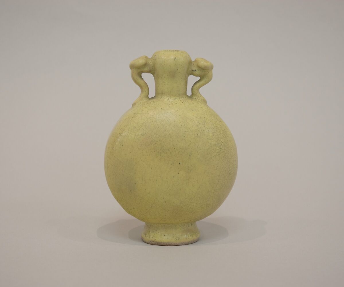 - Medium: Porcelain with crackled yellow glaze (Jingdezhen ware)