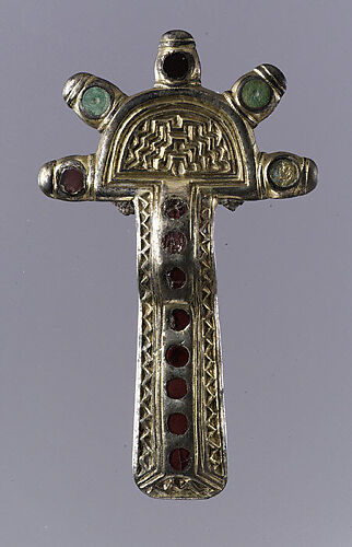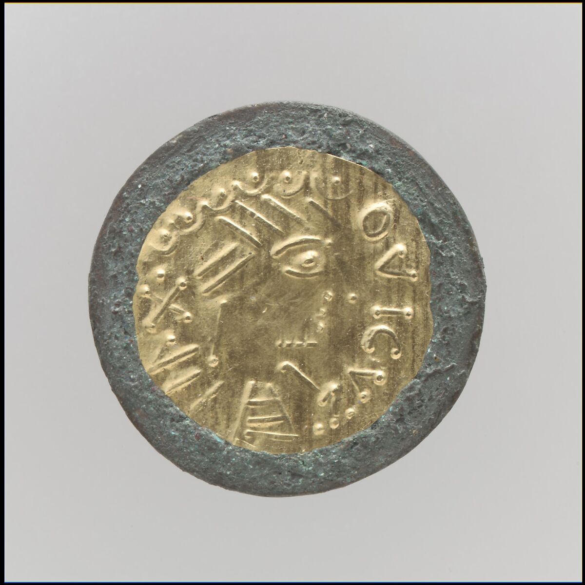 The relief pattern of these brooches was created by working a thin sheet of metal from the reverse side. Roman coins were the inspiration for such designs.