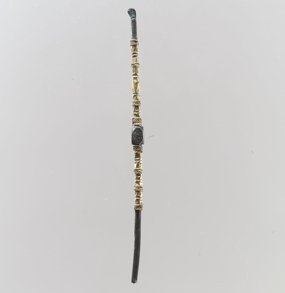 Pins were used to secure a veil or to hold a hairstyle in place. Most were made simply of copper alloy, sometimes tinned to look like silver, but some were elaborate objects, showcasing an array of metalsmithing techniques.