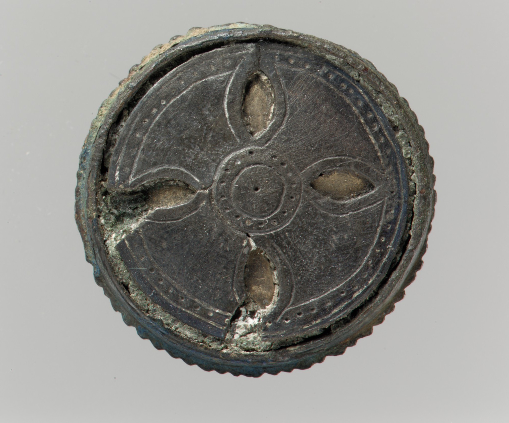 Medium: Silver-gilt. copper alloy, remnants of iron pin