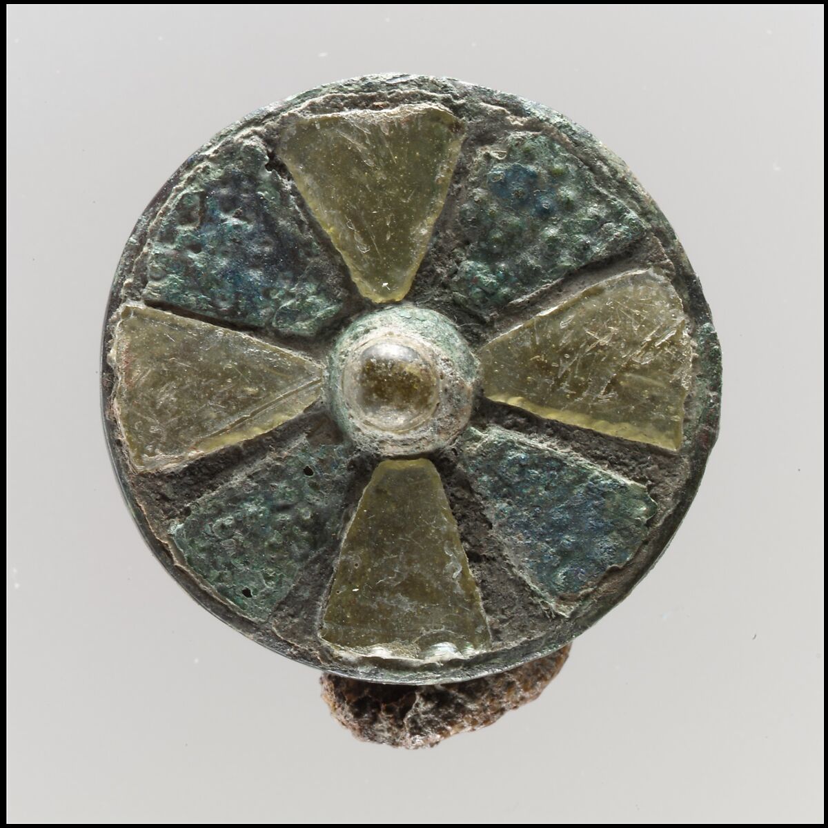 - Medium: Copper alloy cloisons, side and back; glass and patterned copper alloy
