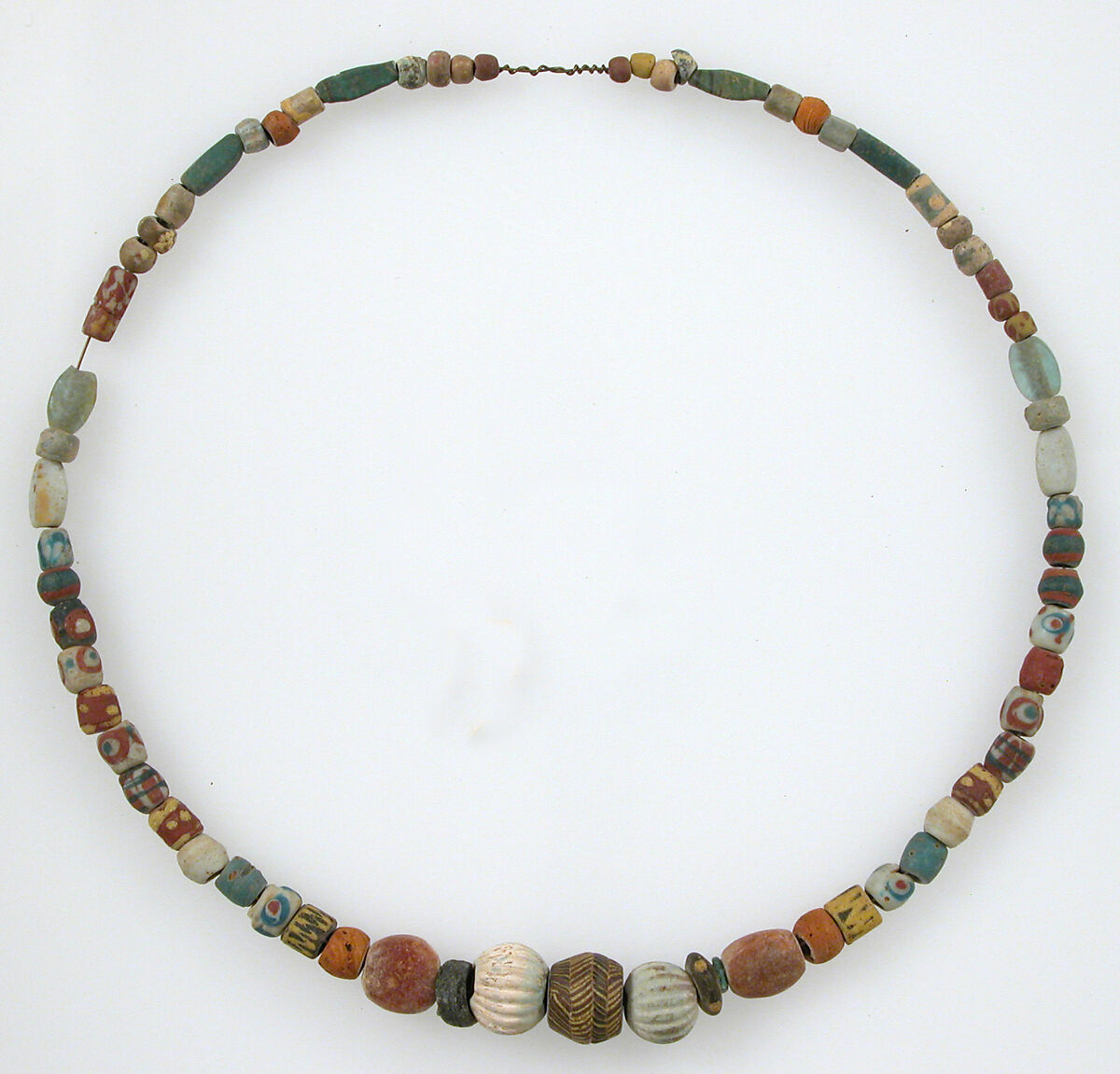 - Medium: Glass, amber, glazed earthenware (faience), silver ring, copper alloy rings