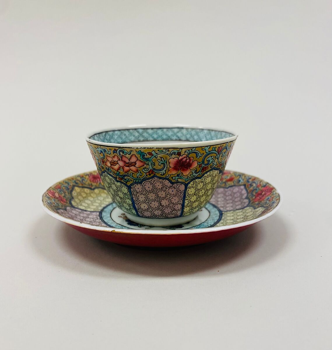 - Dimensions: Cup: H. 1 1/8 in. (2.9 cm); Diam. of rim 2 7/8 in. (7.3 cm); saucer: H. 3/4 in. (1.9 cm); Diam. 4 5/8 in. (11.7 cm)