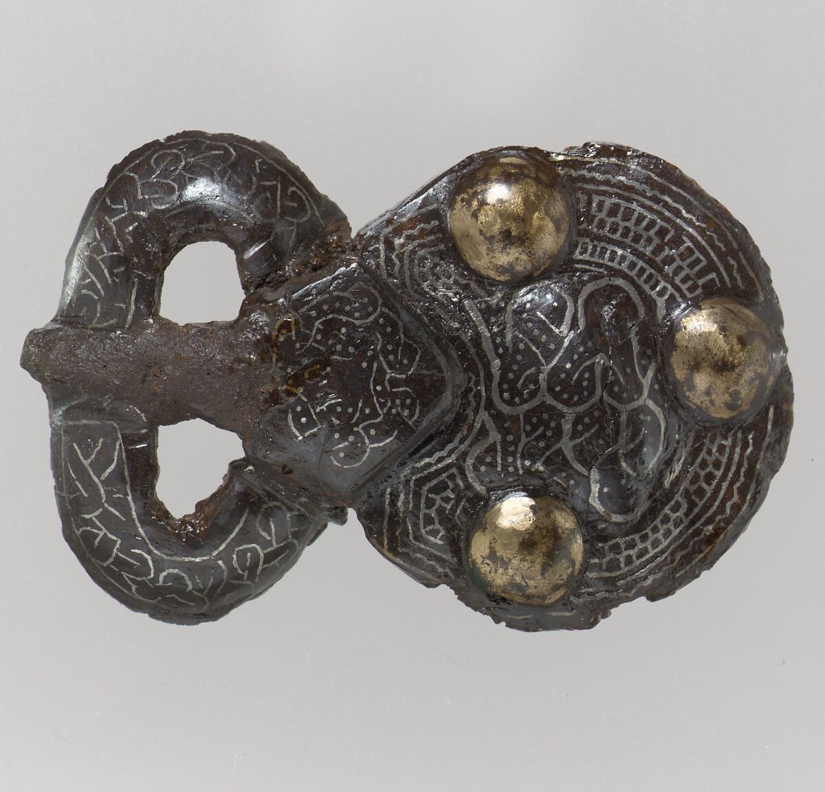 - Medium: Iron inlaid with silver, iron rivets with heads of copper alloy