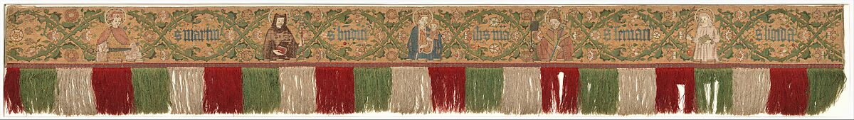 - Medium: Linen, silk and gold thread, woven and embroidered