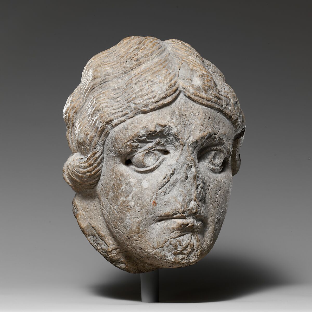 The pilgrimage church of Saint-Gilles-du-Gard reveals the strong influence of antiquity on Romanesque art in France. This head can be associated with the church on stylistic grounds and demonstrates the influence of locally available ancient Roman sculpture. The ancient tradition was transformed through the simplification and stylization of facial features. Surprisingly the left and right sides of the face reveal two different stylistic modes.