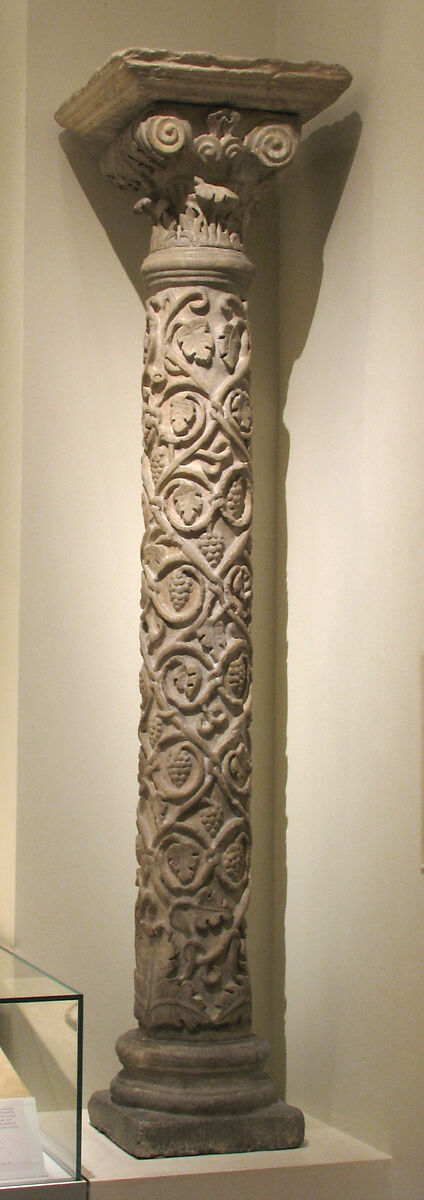This column (with its pair acc. no. 21.172.1), along with some twenty others, are all that remain of the “Golden Church” of La Daurade. The church, which derived its name from the Latin word meaning “gilded” (deaurata), was famous for the gold mosaics that covered the niches and walls of its seven-sided sanctuary. Rows of elegant columns framing the niches contributed to its lavish interior. Founded about 399 as a convent, the church had been converted to a monastery by the 800s, before being destroyed in 1761.