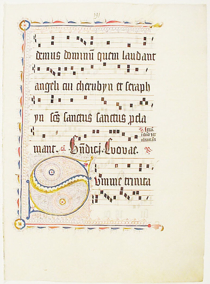 - Title:Manuscript Leaf with Initial S, from an Antiphonary