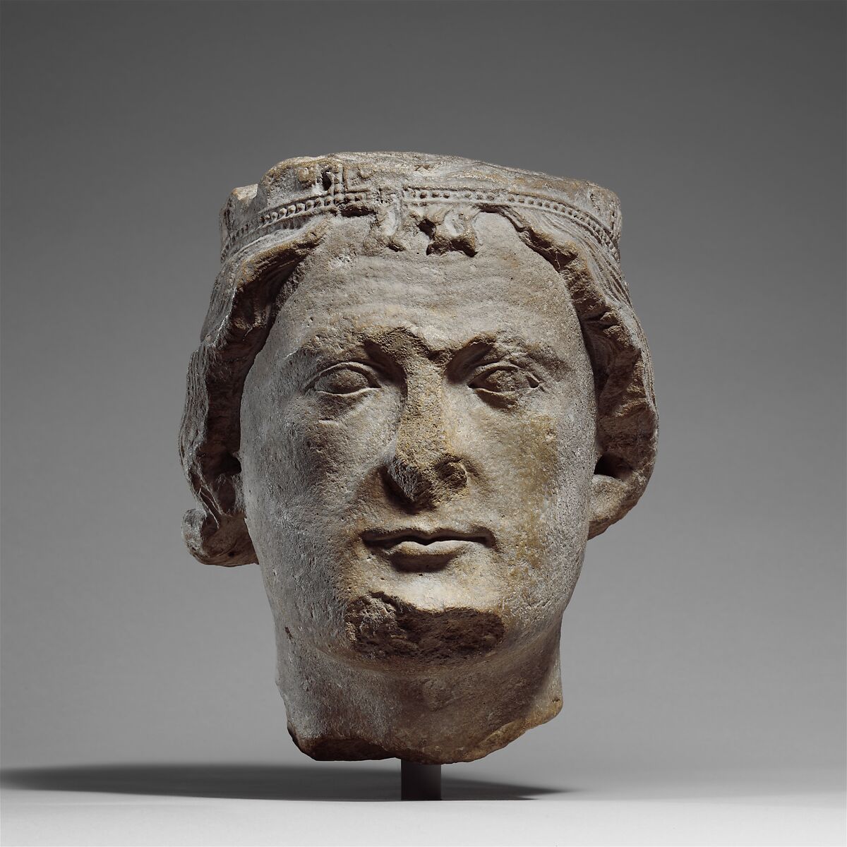 This and a similar head in the Musée du Louvre, Paris, both come from the same series of kings on the façade of the collegiate church of Notre-Dame, Mantes. The series of nearly life-size kings originally adorned the upper galleries of the façade.