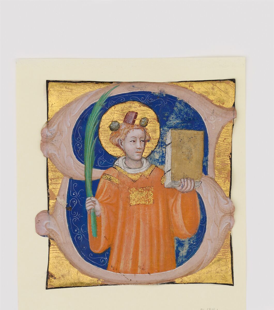 - Title: Manuscript Illumination with Saint Stephen in an Initial S, from an Antiphonary
