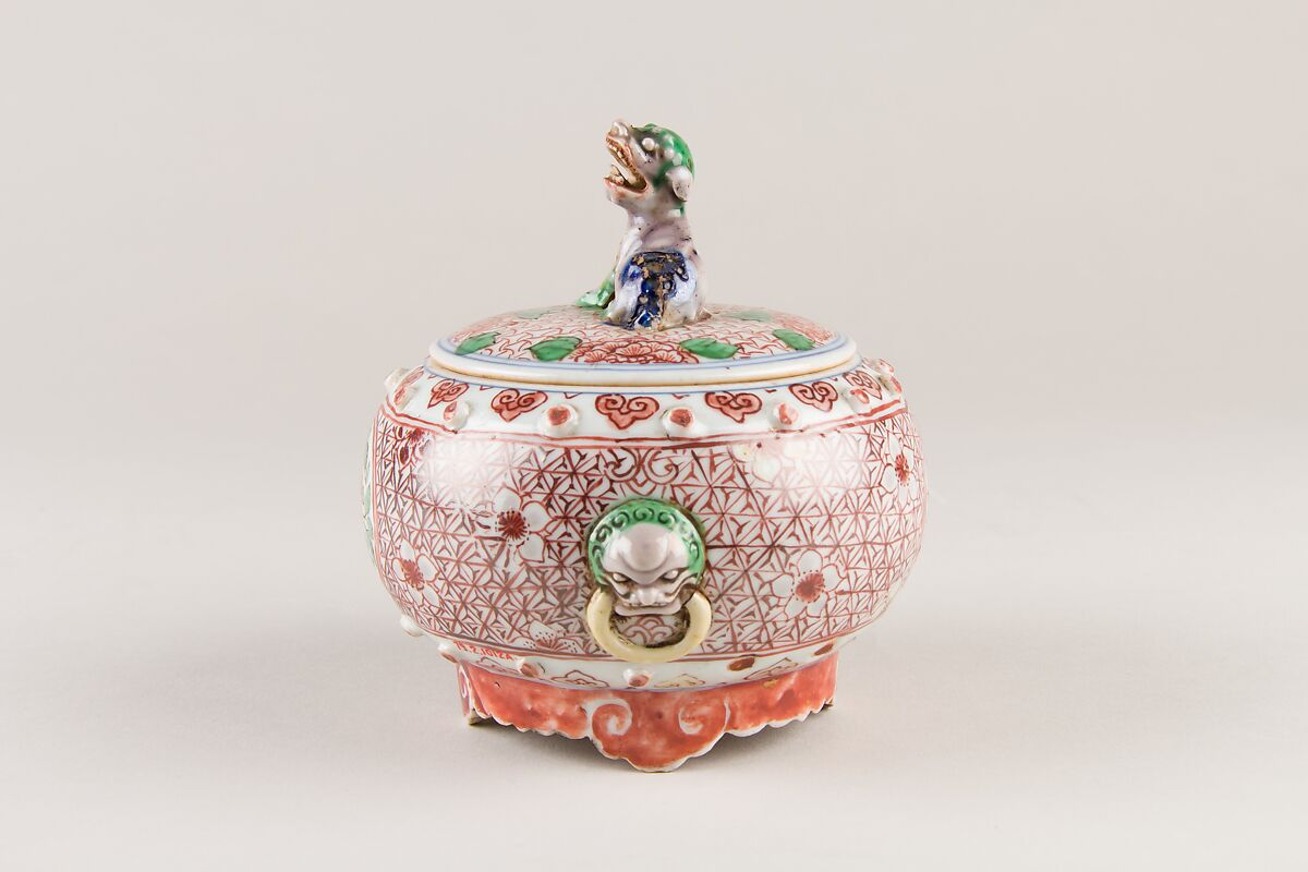 - Medium: Porcelain decorated with iron red and enamels