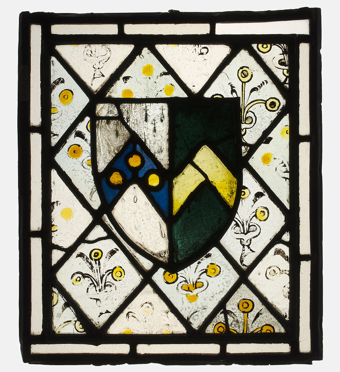 - Medium: Pot-metal, colorless glass, and vitreous paint