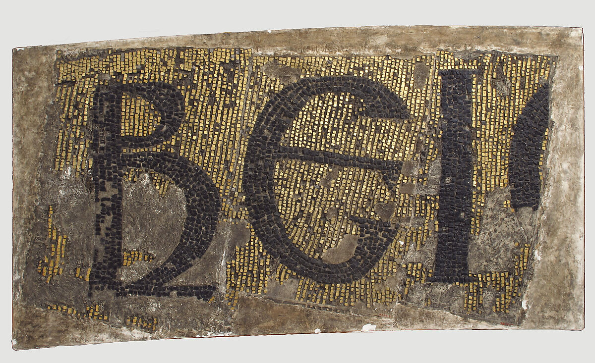 - Medium: Plaster cast, painted tesserae