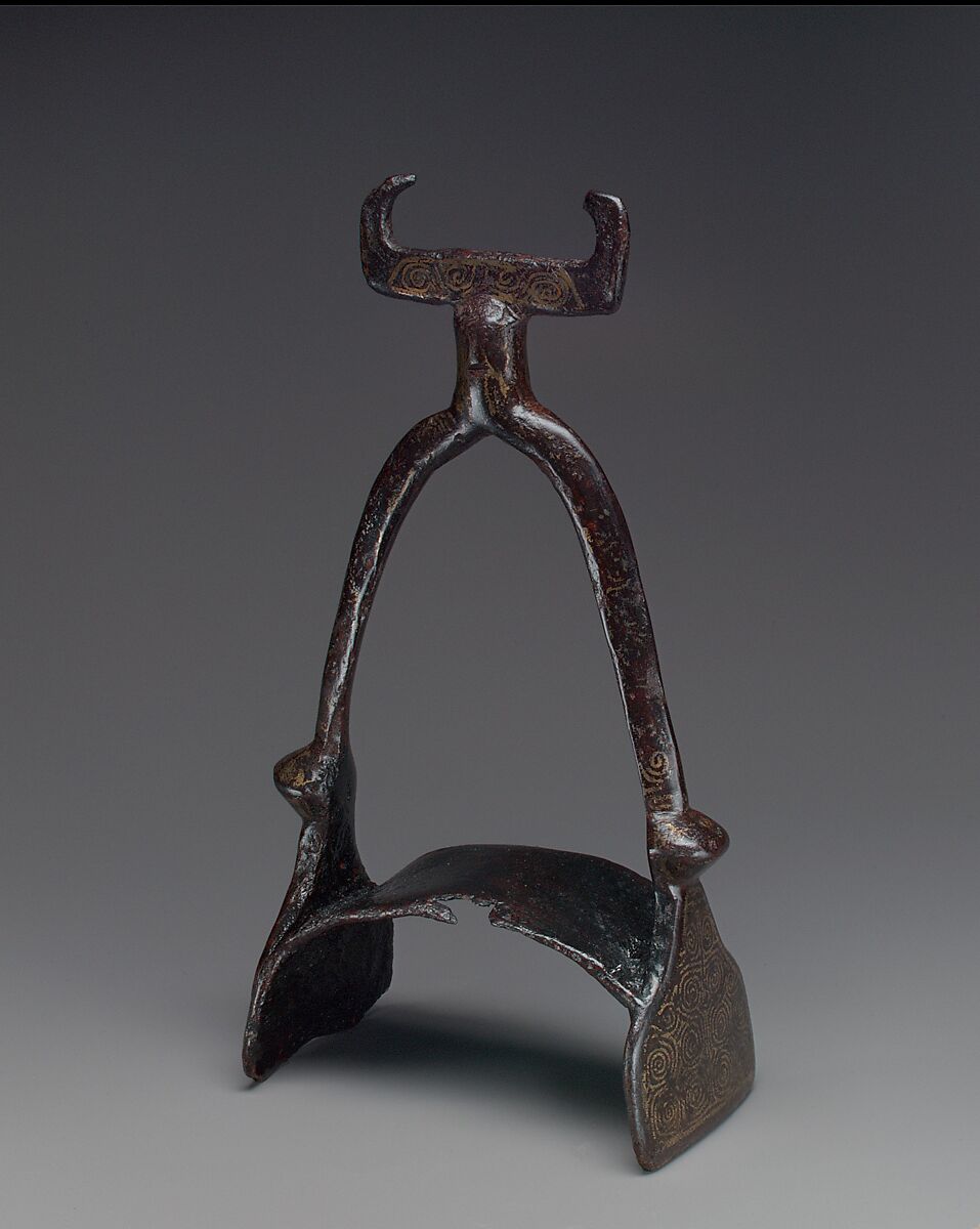 Though the Vikings are best known as seafaring warriors, through contact with Europe they grew even more adept as cavalrymen. This stirrup, decorated with a distinctive technique of iron inlay, is of a type found in England and may have been introduced in the renewed Viking attacks at the end of the tenth century.