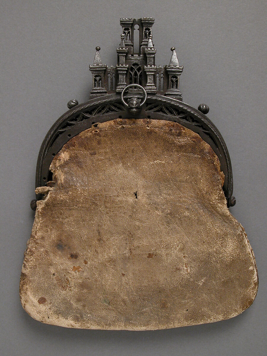 Purses of various shapes and sizes, carried by both men and women, were given descriptive terms in medieval inventories, such as bourse or poche à compartement. In the fifteenth century, purses with clasps of metal and loops on the rear which could be attached directly to the belt superseded the pouches which closed with drawstrings and hung from the belt. The clasp no doubt came into use to provide greater security for money or other valuables when the owner walked on crowed city streets.