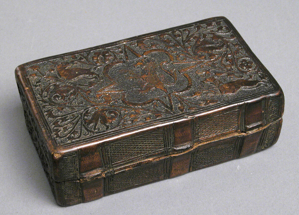 This small container may have been intended to hold rings, ring brooches, and other jewels or trinkets. A small inscription appears on this box, AMA DIO DE BON CORE A FIN (“Love God with a good heart to the end”). Unfortunately, this inscription does not provide a clue to the specific use for which the container was intended.