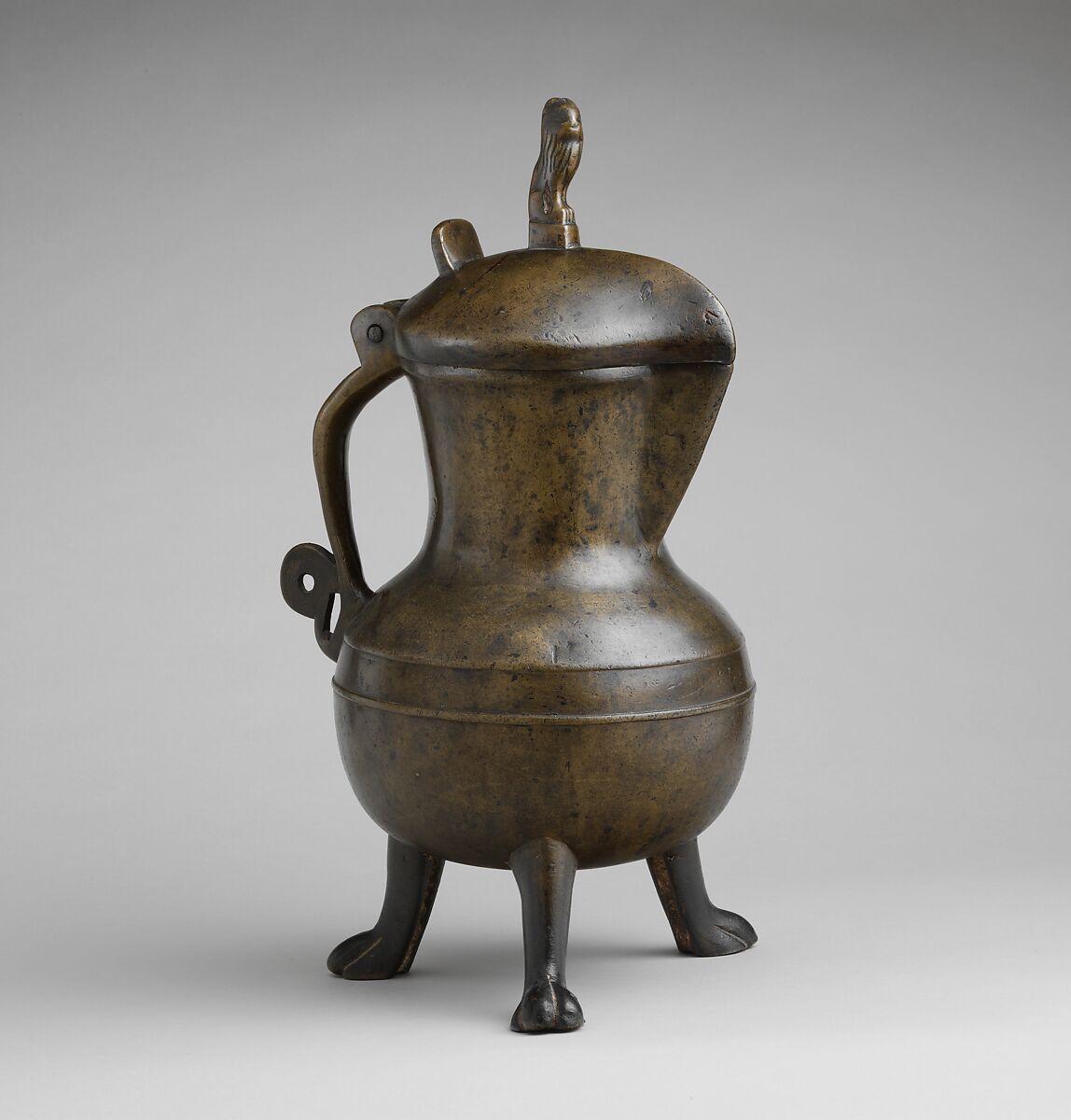 The legs on this vessel resemble those on contemporary cooking pots, suggesting that this sturdy jug was used both for heating and for serving. The area around Dinant was renowned for such domestic brasswork, which was then exported throughout Northern Europe.