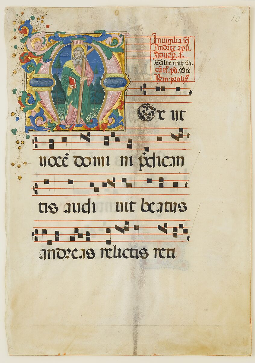 Manuscript Leaf with the Feast of Saint Andrew in an Initial M, from an Antiphonary