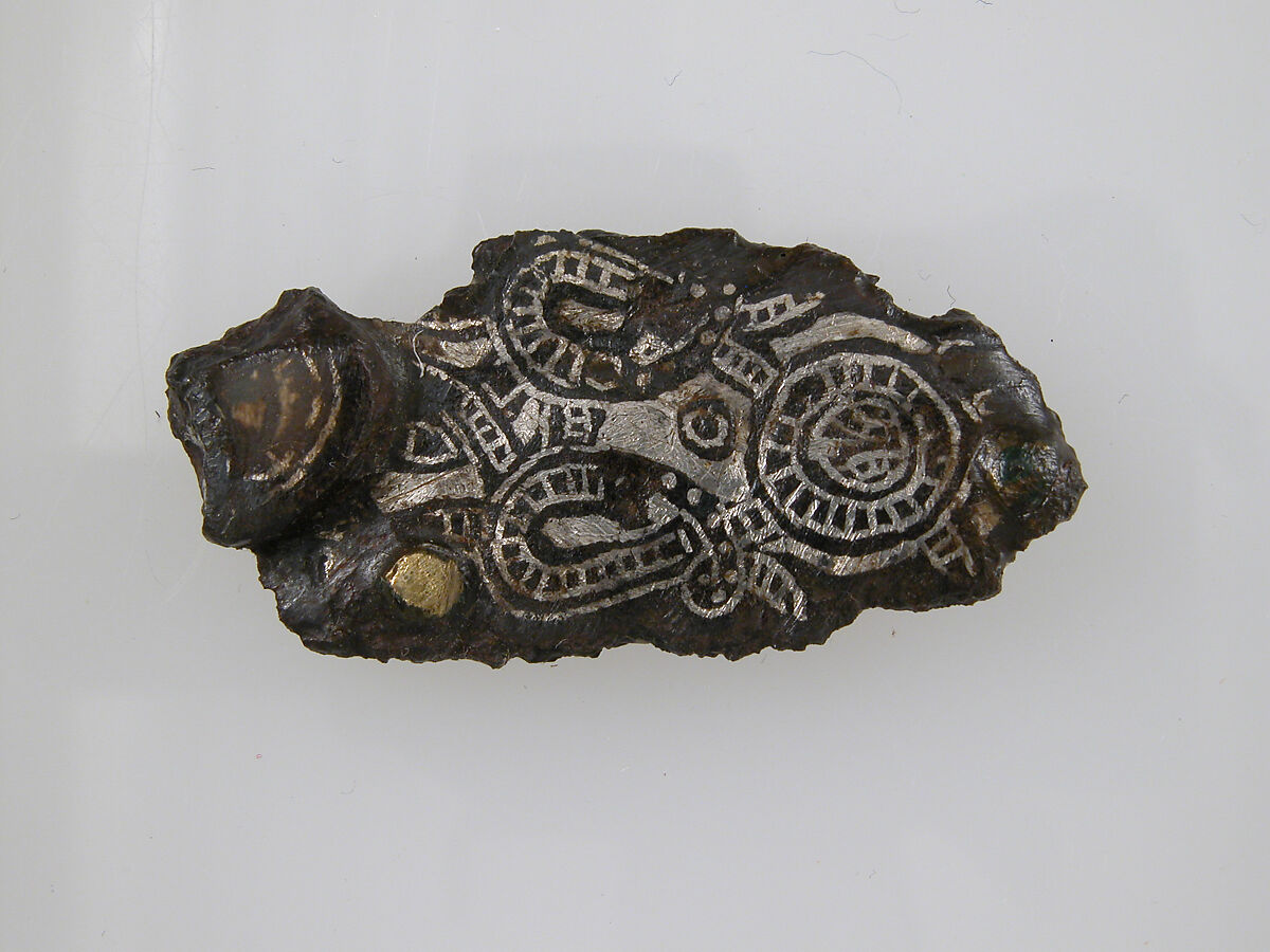 - Medium: Iron, silver and brass inlay, gilt bronze nail