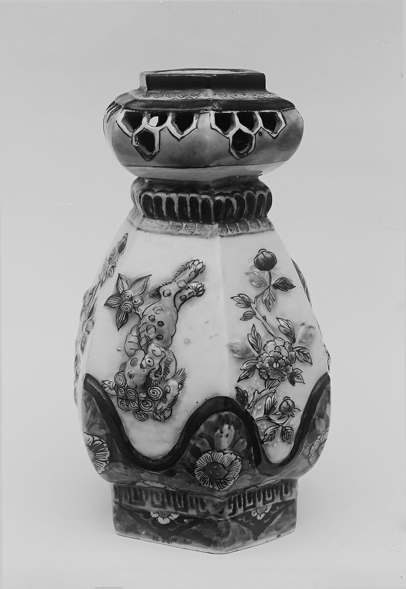 - Medium:White porcelain with slip relief; decorated with blue under the glaze, polychrome enamels (Arita ware)