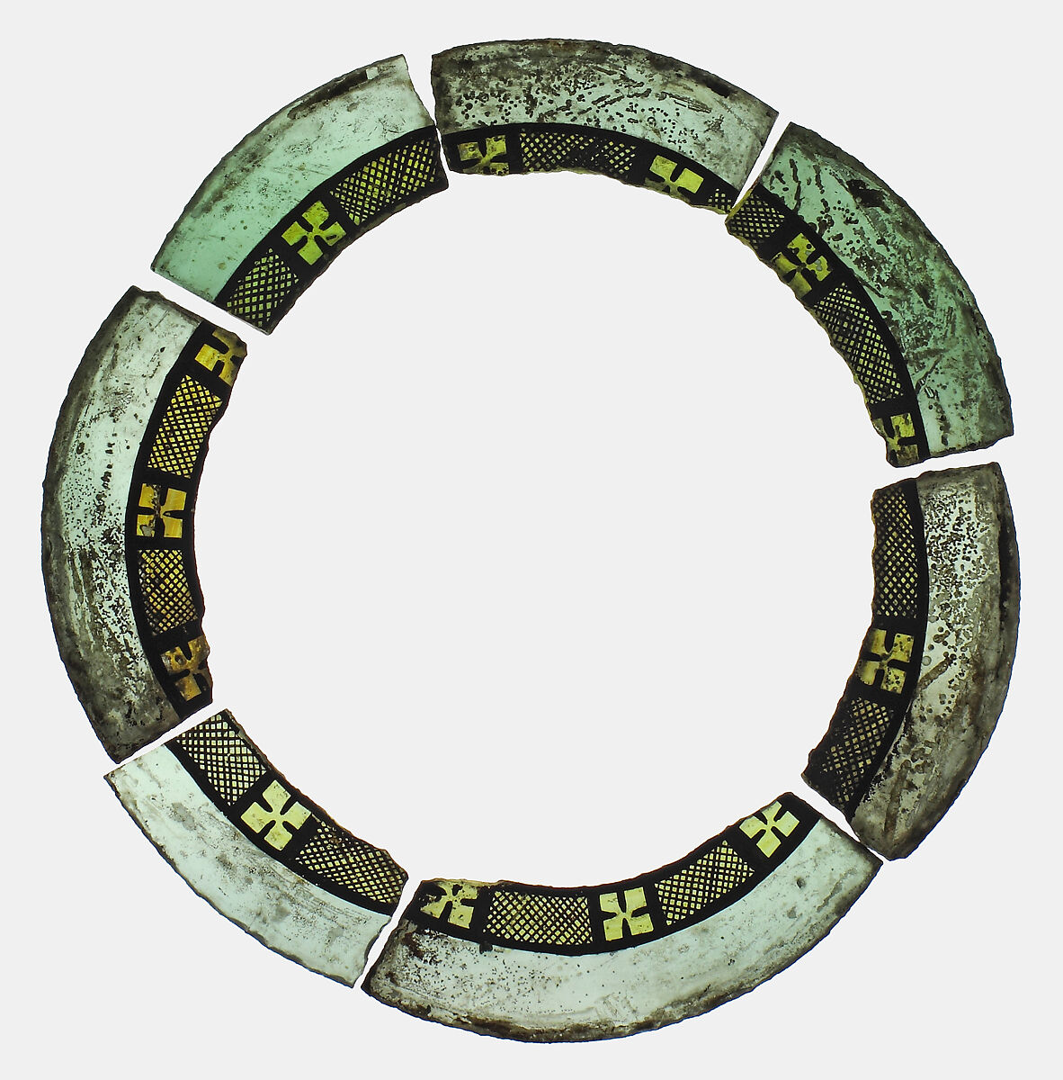 Diam. with border: 7 15/16 in. (20.1 cm) - Classification:Glass-Stained