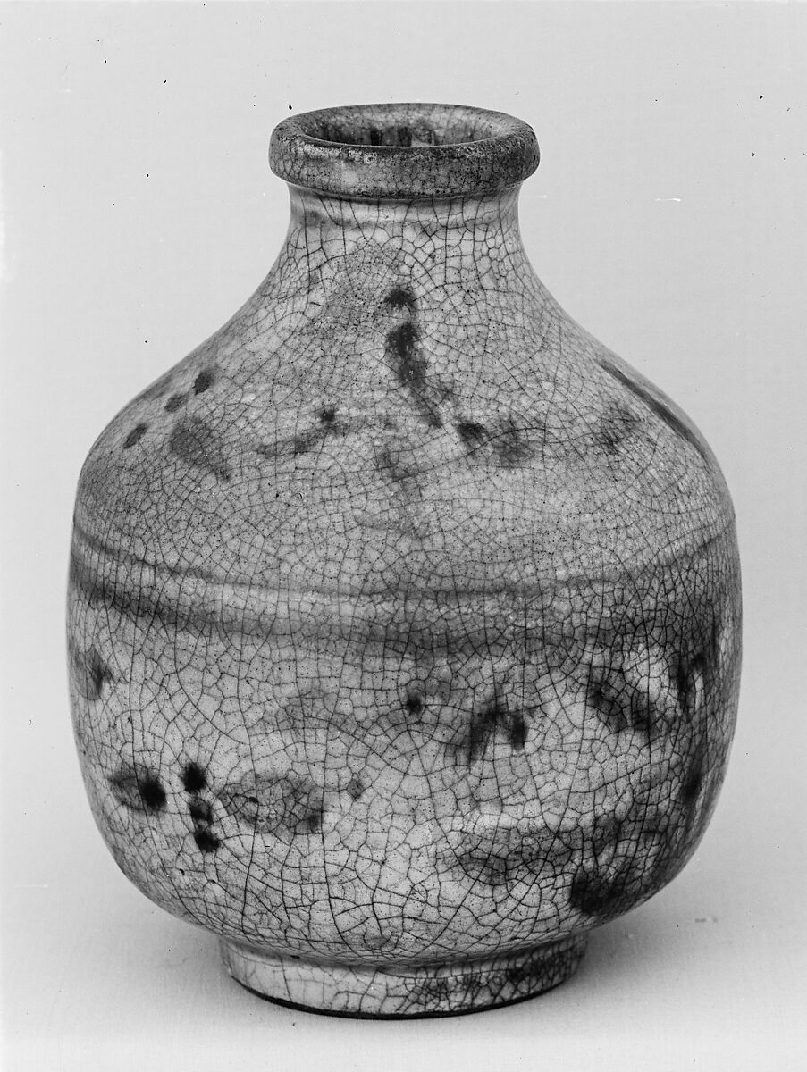 - Medium: Pottery decorated with a blue underglaze, covered with a thick crackled glaze