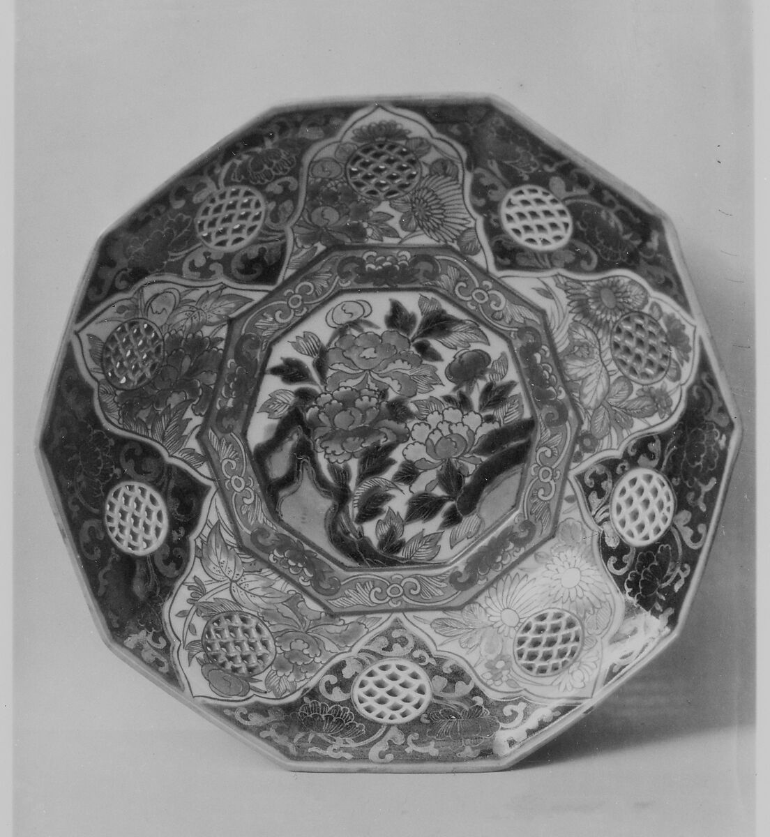 - Medium: Porcelain decorated in enamels and pierced medallions (Arita ware, Imari type)