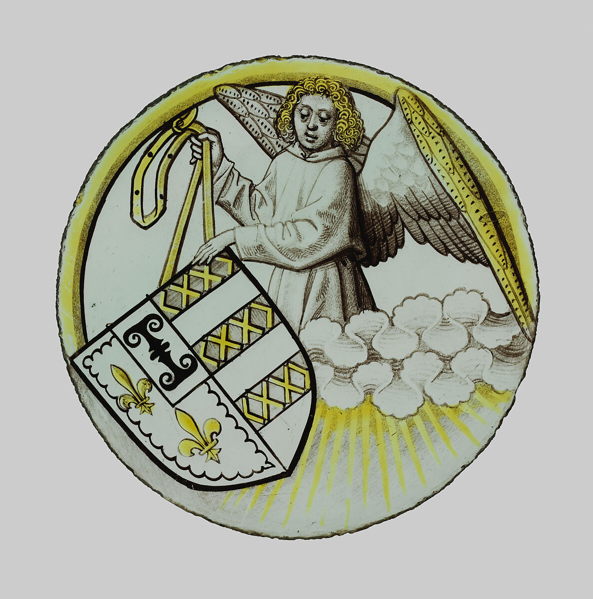 - Title: Roundel with Angel Supporting a Heraldic Shield
