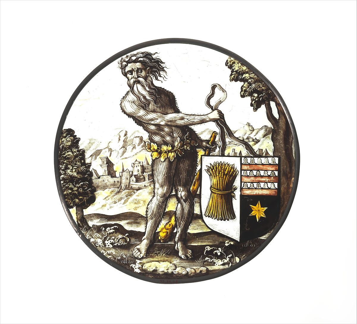 - Title: Roundel with Wild Man Supporting a Heraldic Shield