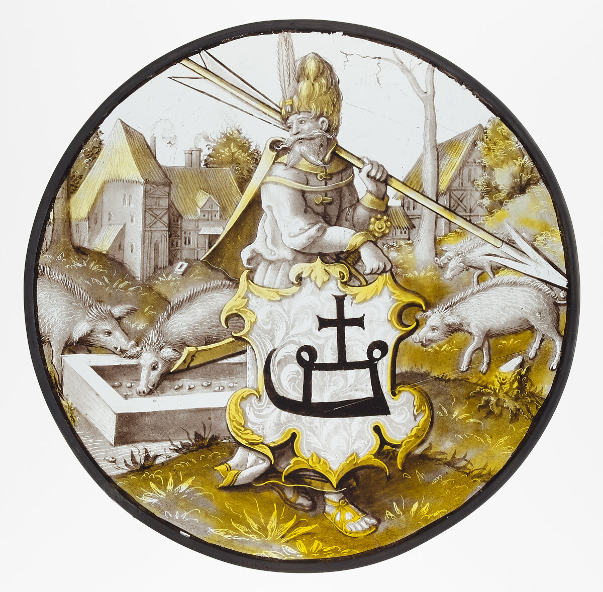 Roundel with Turkish Soldier holding an Arrow and Support