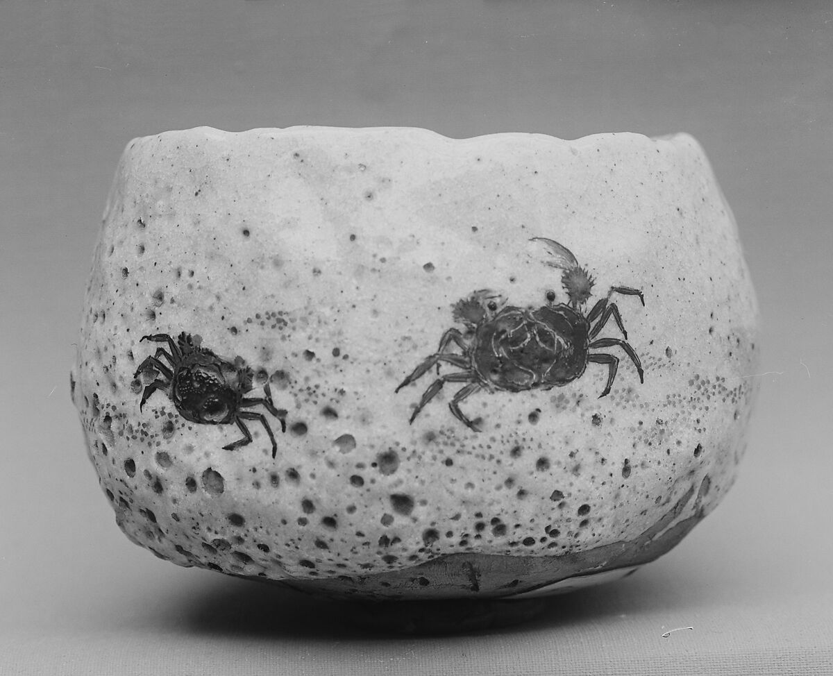 - Medium:Clay covered with a frothy white glaze and decorated with gold and black (Mino ware, Shino type)