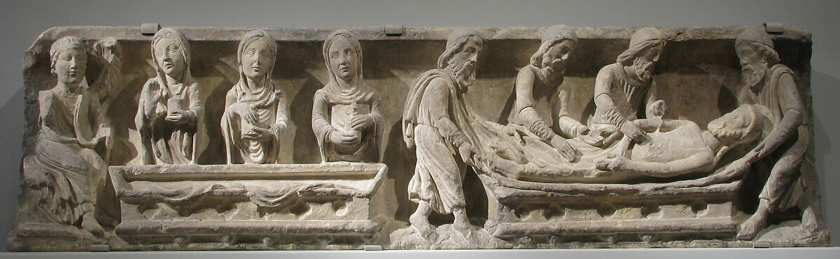 Lintel with the Entombment of Christ (right) and the Holy Women and Angel at the Sepulchre (left)
