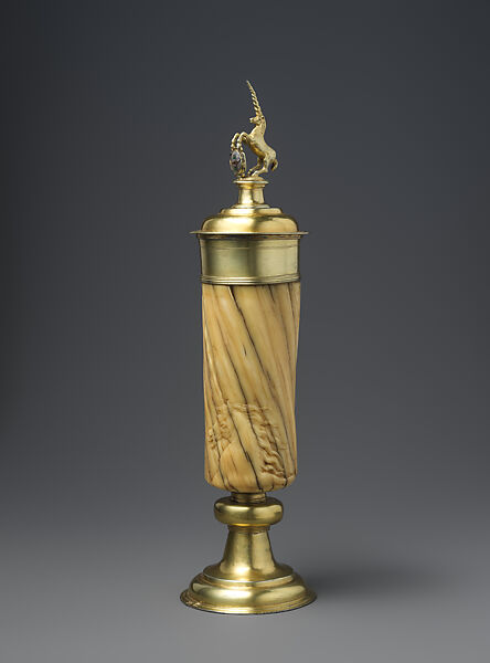 - Medium: Narwhal tooth, gilded silver, and enamel