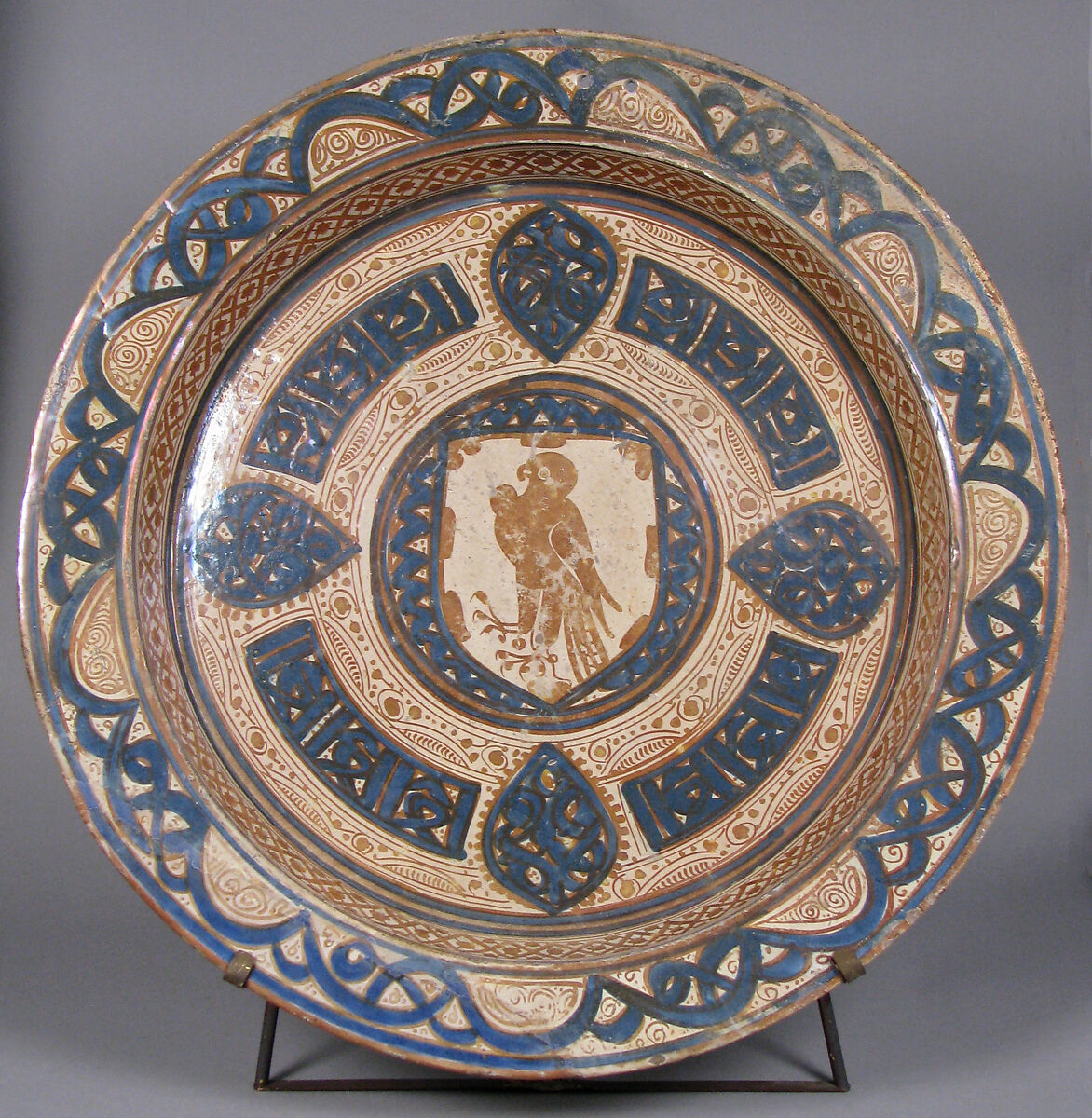 Knowledge of the technique for creating lusterware made its way to the Iberian Peninsula by the twelfth century, when most of the region was still under Islamic rule. By the 1400s, the Iberian center of lusterware production was in Manises, near the city of Valencia. Previously a Muslim taifa, or principality, the Kingdom of Valencia was conquered in the thirteenth century by James I for the Crown of Aragon, and it was here that Christians and Muslim potters worked, sometimes together, for a diverse clientele with a voracious appetite for high quality lustered wares.
