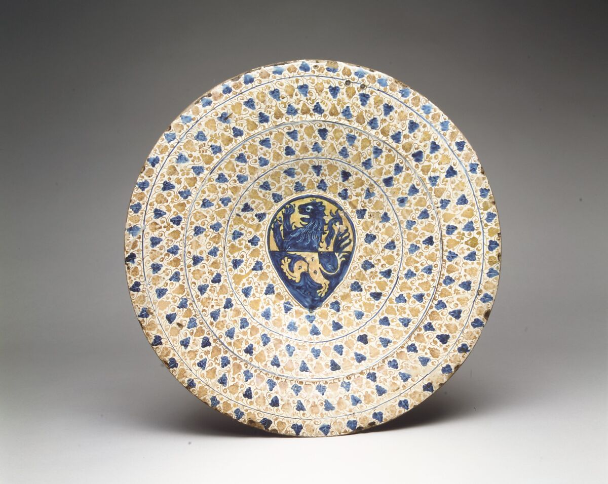 Knowledge of the technique for creating lusterware made its way to the Iberian Peninsula by the twelfth century, when most of the region was still under Islamic rule. By the 1400s, the Iberian center of lusterware production was in Manises, near the city of Valencia. Previously a Muslim taifa, or principality, the Kingdom of Valencia was conquered in the thirteenth century by James I for the Crown of Aragon, and it was here that Christians and Muslim potters worked, sometimes together, for a diverse clientele with a voracious appetite for high quality lustered wares.
