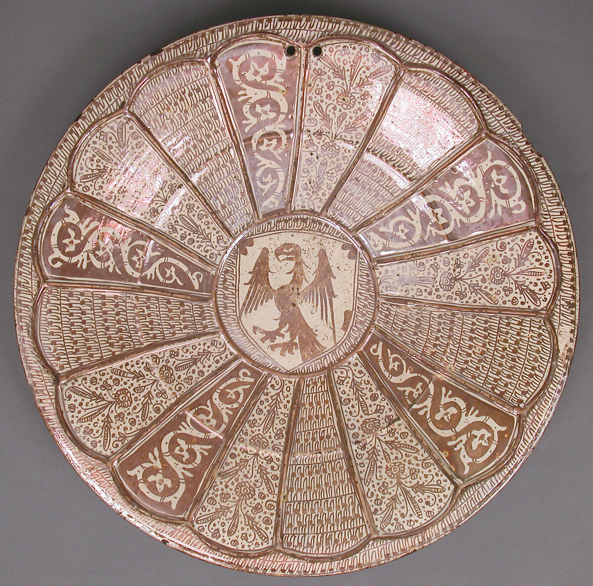Knowledge of the technique for creating lusterware made its way to the Iberian Peninsula by the twelfth century, when most of the region was still under Islamic rule. By the 1400s, the Iberian center of lusterware production was in Manises, near the city of Valencia. Previously a Muslim taifa, or principality, the Kingdom of Valencia was conquered in the thirteenth century by James I for the Crown of Aragon, and it was here that Christians and Muslim potters worked, sometimes together, for a diverse clientele with a voracious appetite for high quality lustered wares.