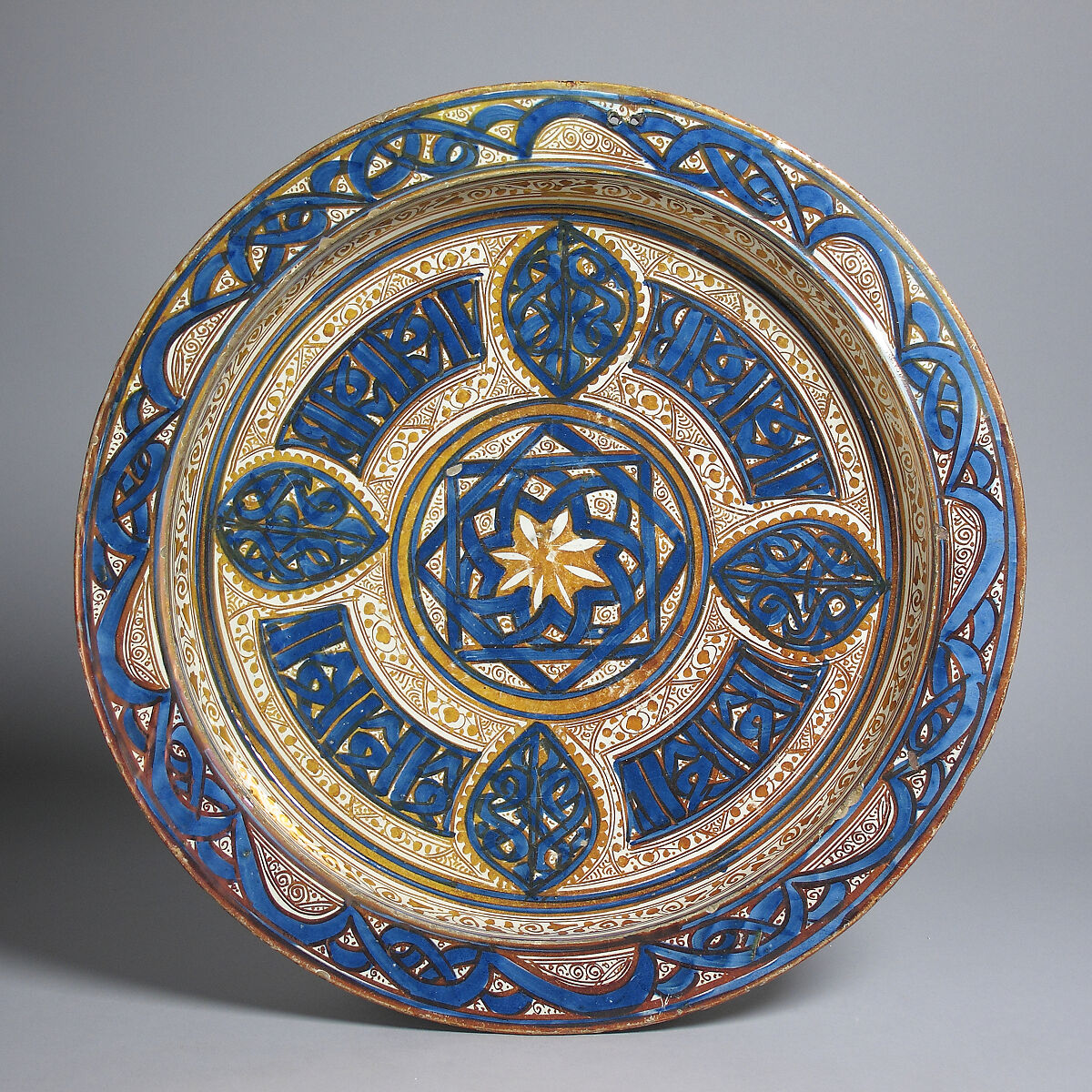 Knowledge of the technique for creating lusterware made its way to the Iberian Peninsula by the twelfth century, when most of the region was still under Islamic rule. By the 1400s, the Iberian center of lusterware production was in Manises, near the city of Valencia. Previously a Muslim taifa, or principality, the Kingdom of Valencia was conquered in the thirteenth century by James I for the Crown of Aragon, and it was here that Christians and Muslim potters worked, sometimes together, for a diverse clientele with a voracious appetite for high quality lustered wares.