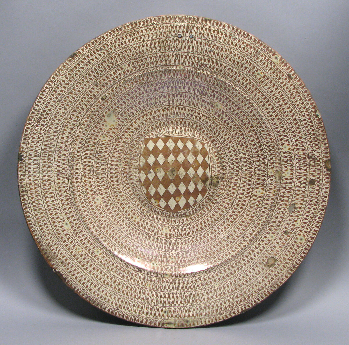 Knowledge of the technique for creating lusterware made its way to the Iberian Peninsula by the twelfth century, when most of the region was still under Islamic rule. By the 1400s, the Iberian center of lusterware production was in Manises, near the city of Valencia. Previously a Muslim taifa, or principality, the Kingdom of Valencia was conquered in the thirteenth century by James I for the Crown of Aragon, and it was here that Christians and Muslim potters worked, sometimes together, for a diverse clientele with a voracious appetite for high quality lustered wares.