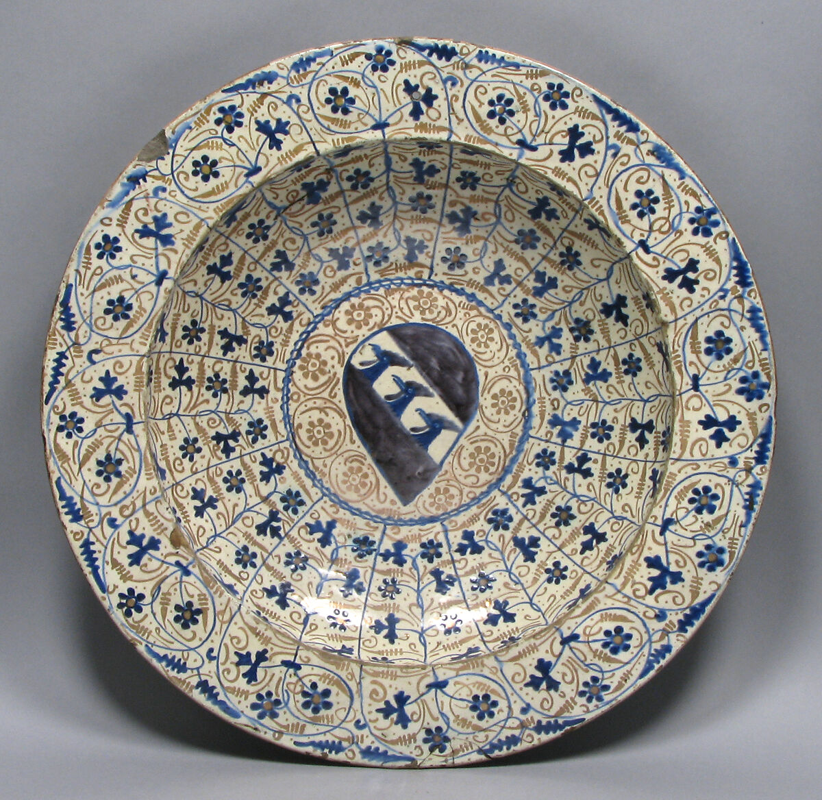Knowledge of the technique for creating lusterware made its way to the Iberian Peninsula by the twelfth century, when most of the region was still under Islamic rule. By the 1400s, the Iberian center of lusterware production was in Manises, near the city of Valencia. Previously a Muslim taifa, or principality, the Kingdom of Valencia was conquered in the thirteenth century by James I for the Crown of Aragon, and it was here that Christians and Muslim potters worked, sometimes together, for a diverse clientele with a voracious appetite for high quality lustered wares.