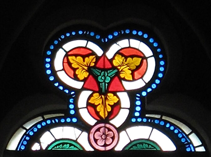 - Medium: Pot-metal and colorless glass with vitreous paint