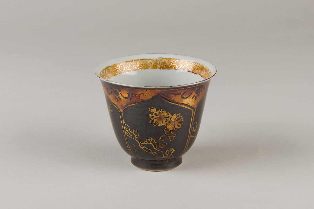 - Medium:Porcelain with a mirror-black glaze, painted in gilt