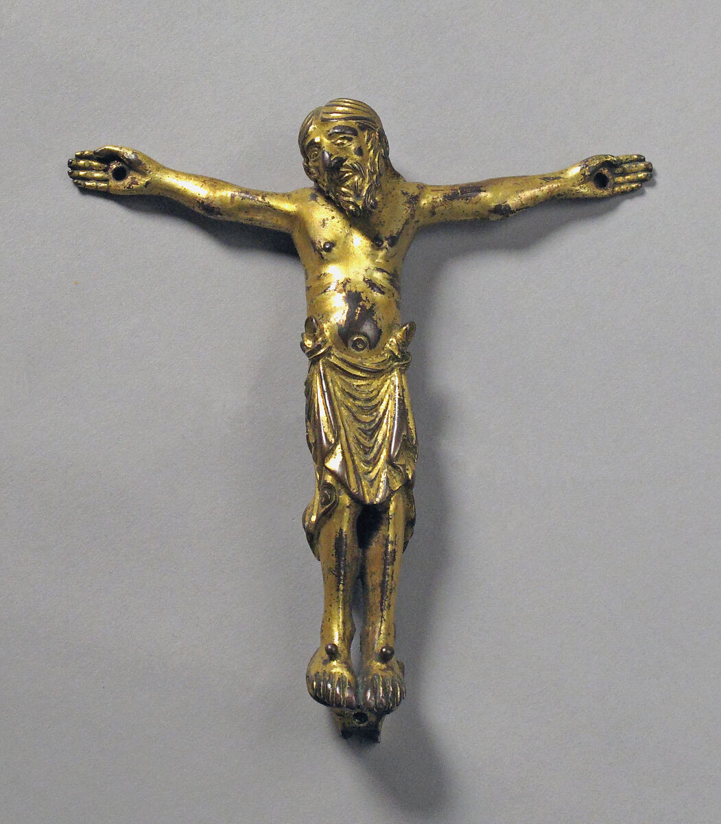 This corpus from an altar cross possesses great strength and individuality. It can be related to a group of cast figures from the Rhine Valley that continues an earlier tradition of depicting the suffering figure of Christ in a naturalistic way with softly modeled anatomical details.